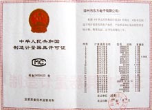計(jì)量合格證書 制造計(jì)量器具許可證